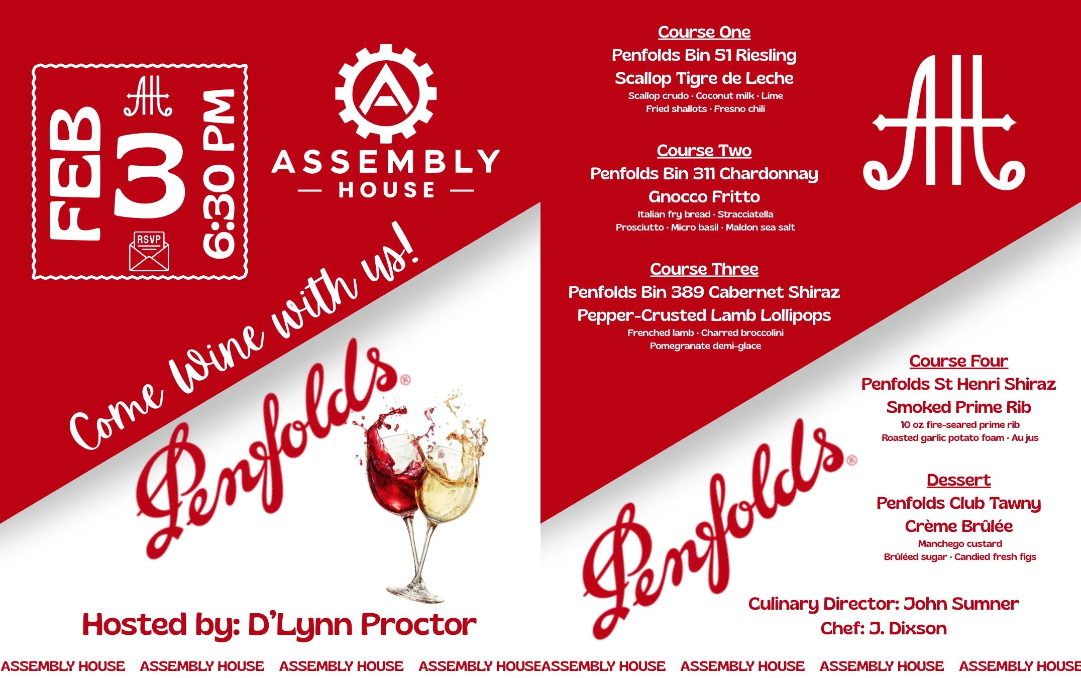 Assembly House is inviting guests to savor an elevated evening of fine dining and world-class wine with an exclusive five-course dinner showcasing the iconic wines of Penfolds, one of Australia’s most celebrated wineries.